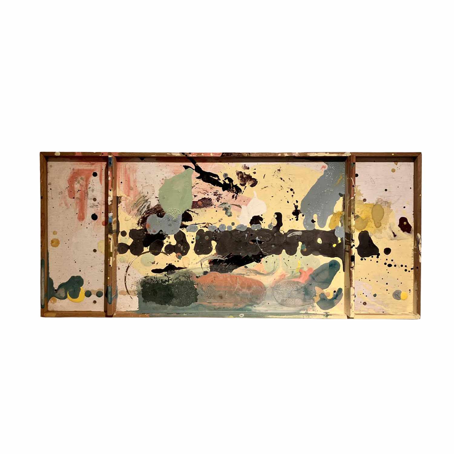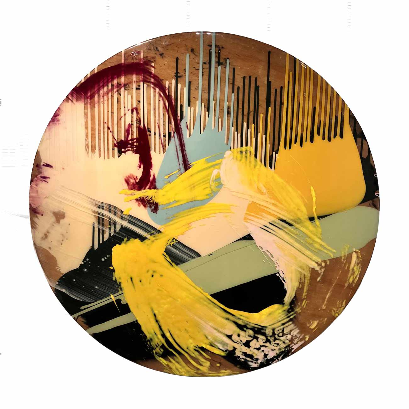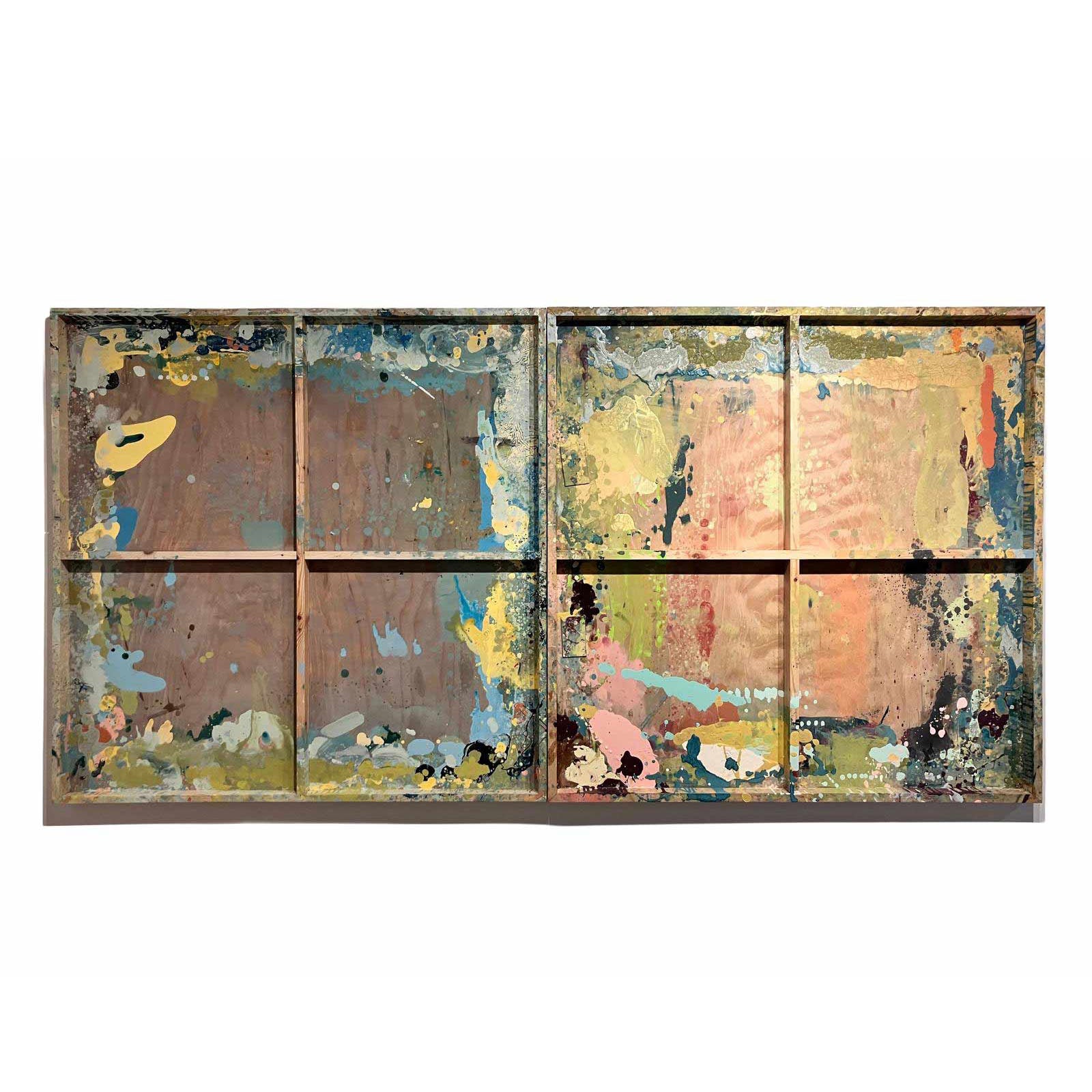 Spirit-based paint, resin on birch ply on reclaimed oak substructure.
